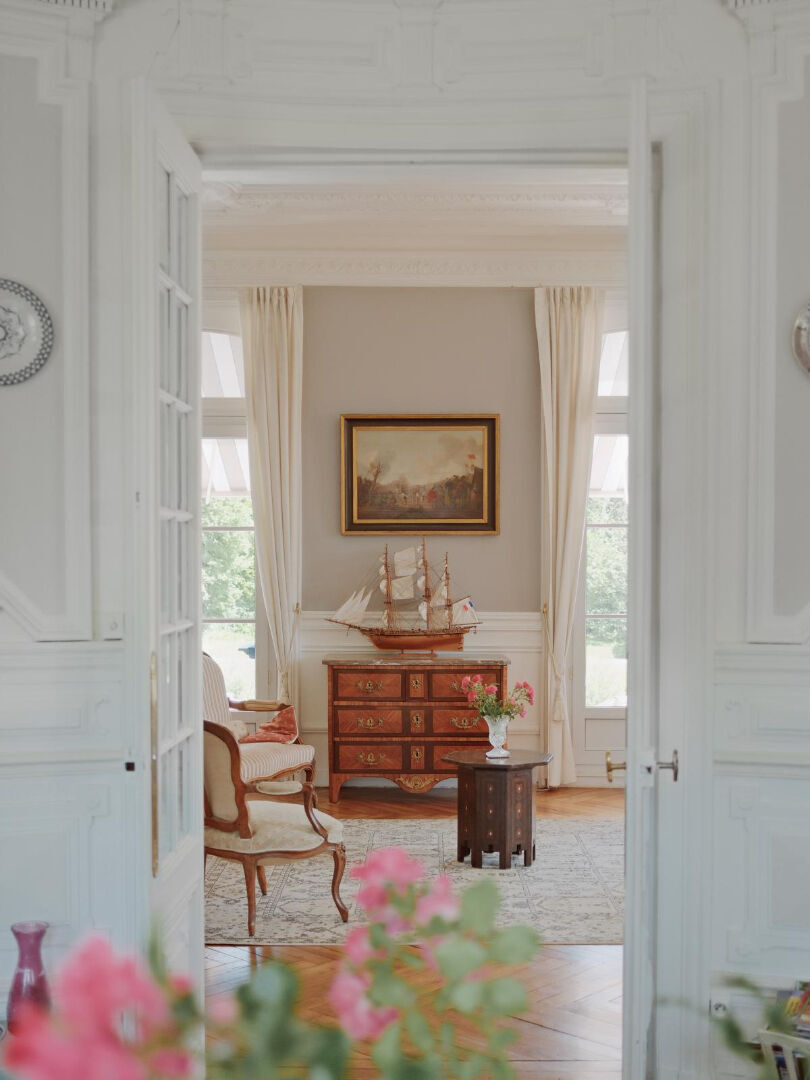 Un spacieux séjour-salon de 44 m² avec parquet ancien, cheminée et moulures