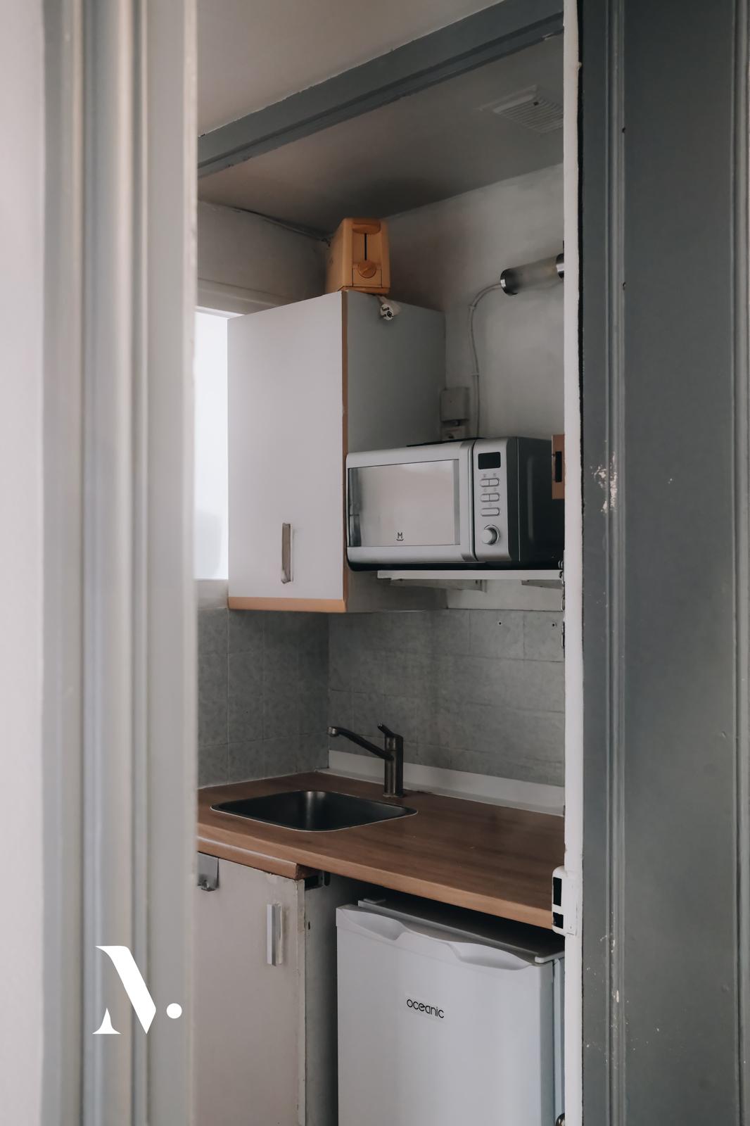 Celui-ci vous propose une pièce principale lumineuse de 12 m², un coin cuisine, une salle de douche avec WC.